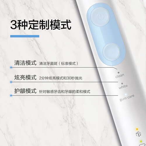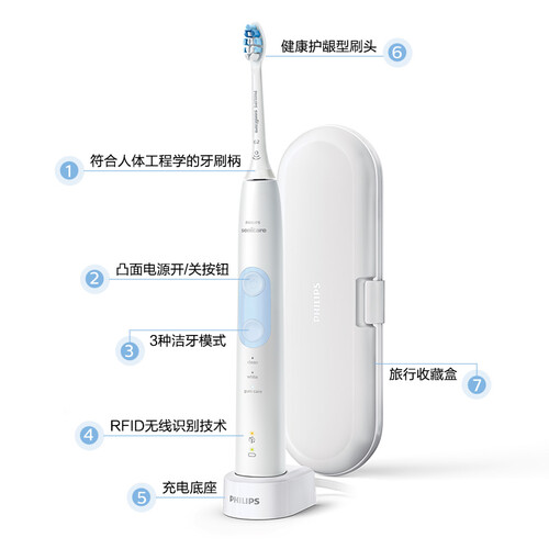 创新流动洁力,多方位清洁牙齿,减少盲区,呵护口腔健康。RFID智能识别技术,智能提醒更换刷头,让刷牙更加有效。