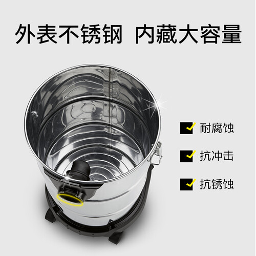 不锈钢桶身设计,结实耐用抗腐蚀,使用寿命长久。搭载大功率电机,内部采用大叶轮设计,风速平稳,吸力持久。