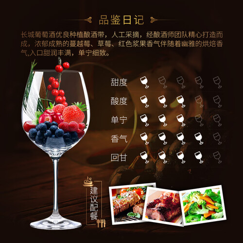 解百纳葡萄酒,口感比较醇厚,入口微酸细腻,果香浓郁优雅。该酒适合搭配各种肉类美食,能使酒更醇香,肉更鲜美。