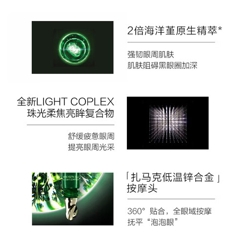 将核心的海洋堇成分融入到配方中,起到了强化眼周肌肤的作用。结合珠光柔焦亮眸复合物的加持,让眼部焕发年轻活力光彩。