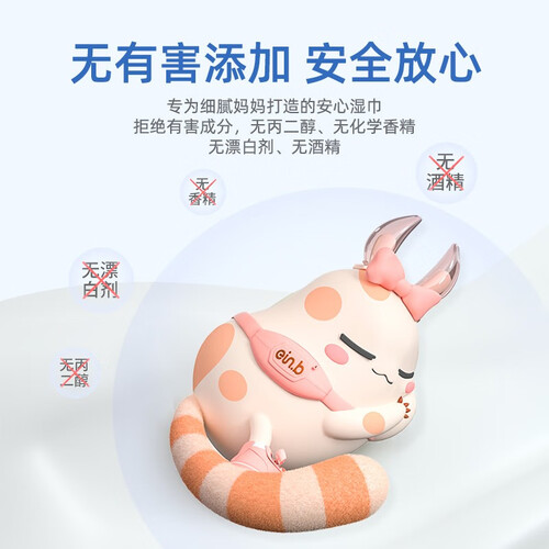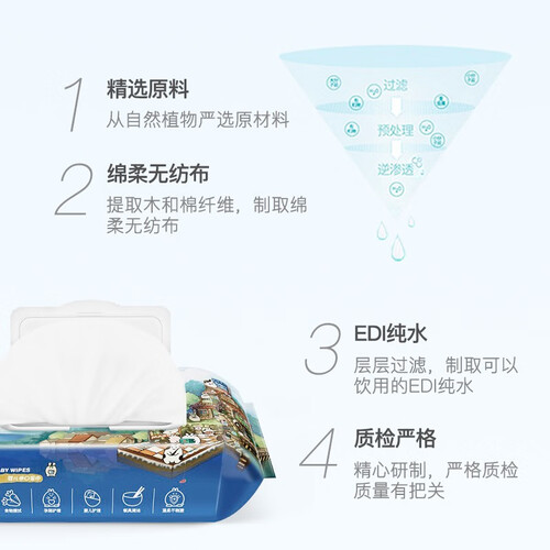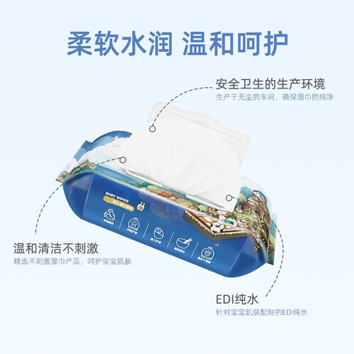 可爱的外形吸引儿童注意力,减少排斥心理。添加的EDI纯水,温和不刺激面部,快速擦去吃饭留下的污渍残留。