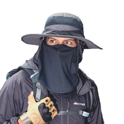 一款大帽檐遮阳帽,可以很好的防晒。搭配遮面一体的设计,让你全方面防晒。