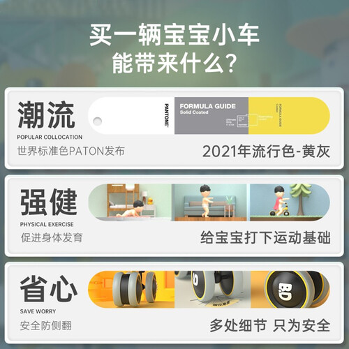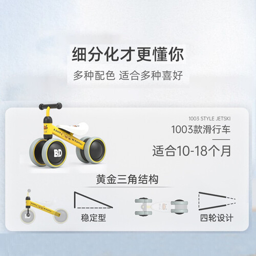 这款学步车使用了稳固的三角结构,同时搭配了四轮支撑,加宽加厚有效的避免侧滑或者侧翻,保证孩子的安全。