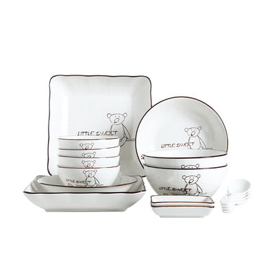 简约的白瓷设计,同时融入萌趣可爱的小熊图案,美观时尚又不失趣味性,摆盘精致颜值高,受到很多潮流人士的青睐。
