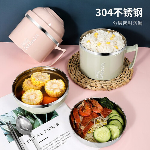 贝瑟斯 双层隔热不锈钢泡面碗