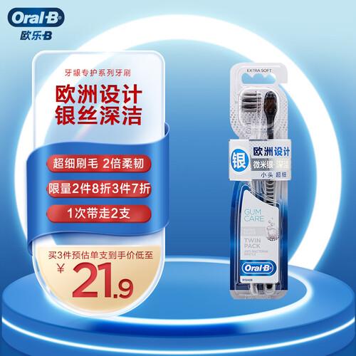超细刷毛,可以深入清洁容易致病的牙龈沟细菌,还能保护牙龈,特别添加银离子,抑制刷毛细菌滋生,保持口腔和牙刷的双重洁净。