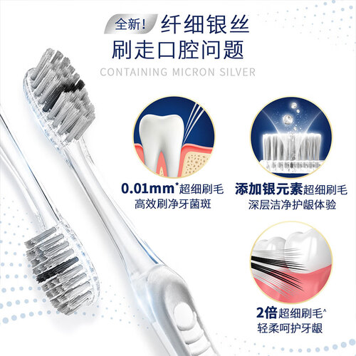 刷毛中特别增添了双重银成分,释放出银离子有效防止细菌滋生。加入多道精密工艺,能够触及平常照顾不到的角落,带来全面护理。