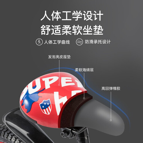 三片式全包裹链罩设计,安全骑行不夹脚,U型车把操控性好,车身平滑无尖锐点,曲线座椅贴合身型,柔软舒适。