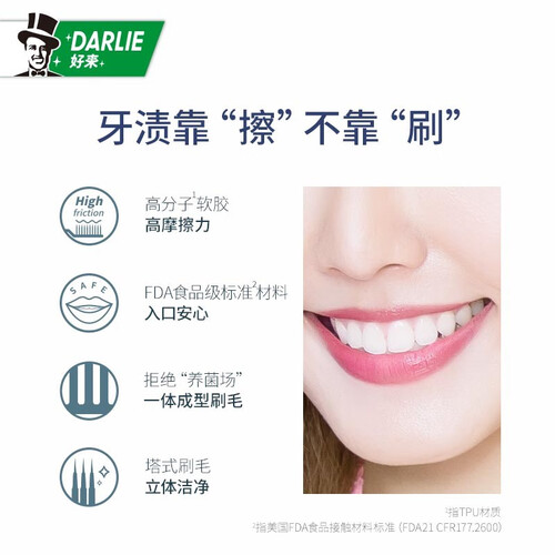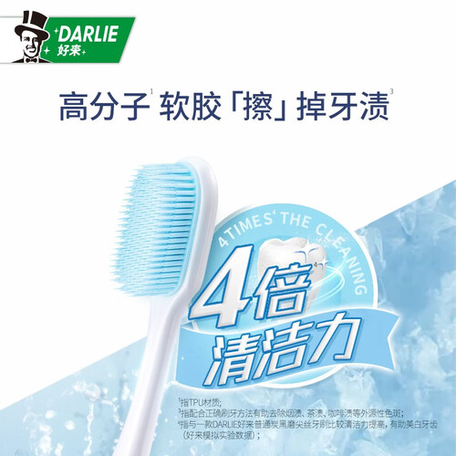 高分子一体软刷毛,摩擦力强、带来洁净新体验,有效清除牙齿表面污渍、亮白牙齿,且本身不易藏垢与生菌,注塑刷柄易握舒适。