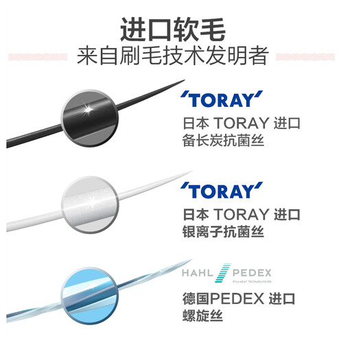 特别使用了三重质地的刷毛,而且经过了科学的排列,提高了清洁力;通过镍银片固定刷丝,久用不易松散或者滋生微生物。