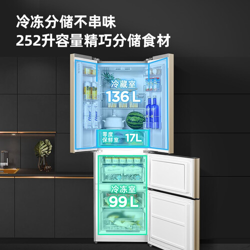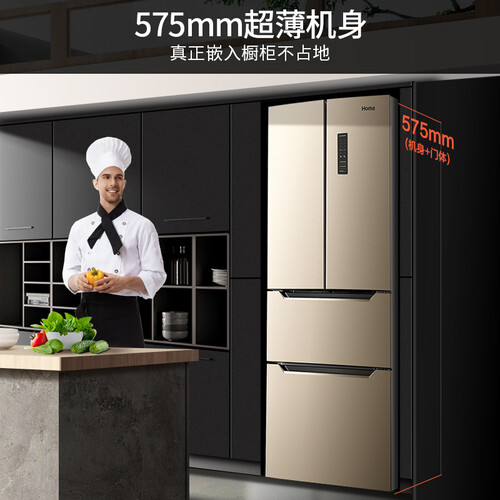 法式风范,超薄机身,嵌入中式橱柜,薄采出众;零度保鲜,锁住新鲜更营养;风冷无霜养鲜科技,告别结霜烦恼。