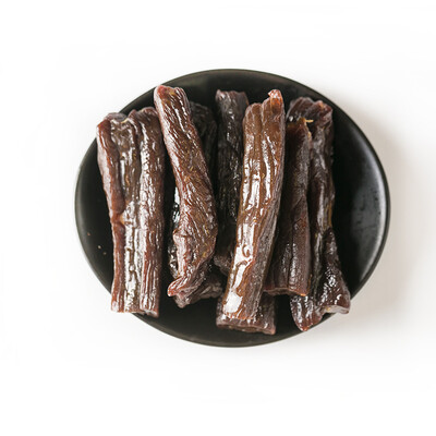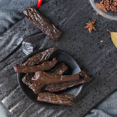 优选草原放养的牛后腿肉,手工切条除去多余筋膜,自然风干,严苛的加工工艺为好牛肉干保驾护航;牛肉干肉质紧实弹韧,入口香醇。
