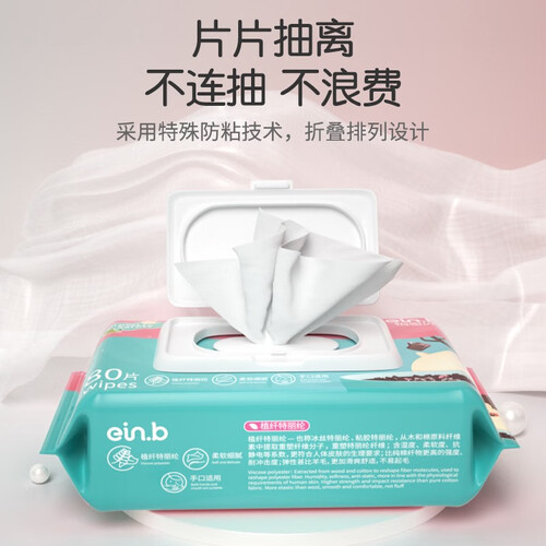 怡恩贝护肤婴儿湿巾,经过6次渗透技术提取的RO纯水,高洁净度的生产管控,纯净度比拟饮用水;手感温润,无化学成分,更安心。