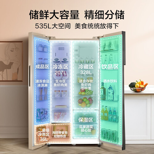 360度立体风冷,避免食材风干,持久保持新鲜,多功能分储设计,不同食材单独存放,不易串味。