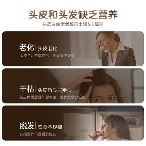 采用草本植物进行发酵提取,加上韩国传统的宫廷护发秘方,对秀发从根部进行强化,更呵护头皮,为您带来亮泽的黑发。
