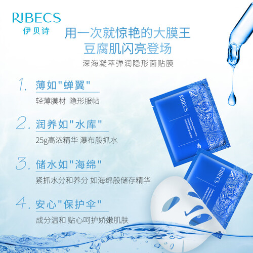 4D弹力呵护技术,给肌肤立体式呵护。轻薄质地舒适亲肤,含有高浓度精华液一片还你水润肌肤。