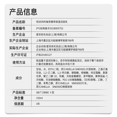 新鲜绿茶的精粹成分,在洁面过程均衡油水,让肌肤更具活力。绵密的泡沫更易清洗深处的污垢,同时让肌肤变得水润。