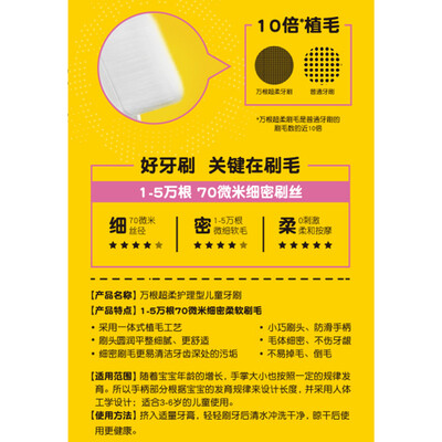 拥有微米级纤细刷丝,即使齿缝难清洁部位也可轻松顾及,防止牙斑产生。结合无铜无锈工艺,无刺激性异味。