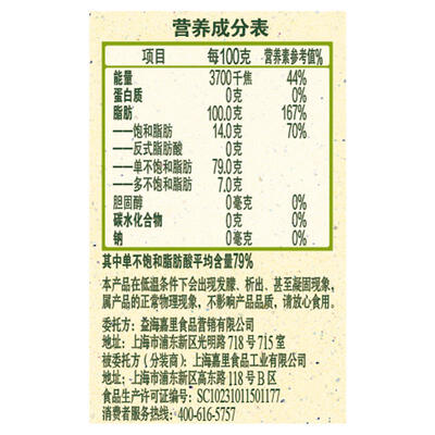 24小时即时冷榨第一道果油,内含多种活性营养成分,具有橄榄油清香风味,适用于凉拌、煎炒和烹调,亦可直接食用。