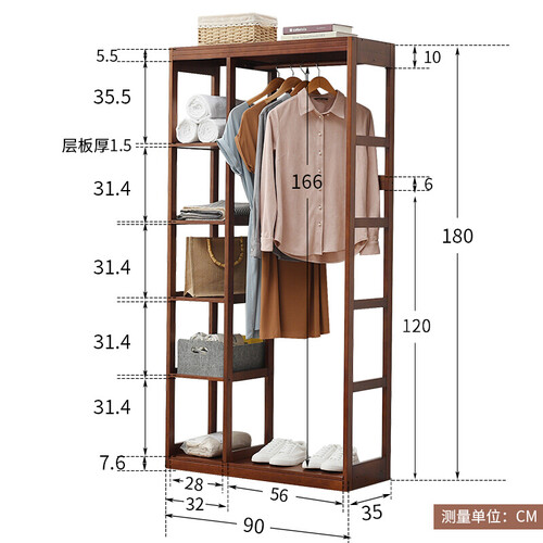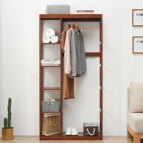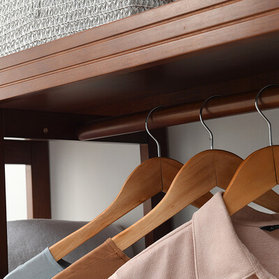 顶板采用了开放式的结构,更方便存放和拿取物品。实木加粗挂杆,带来了良好的承重能力,经过悉心的打磨,没有毛刺。
