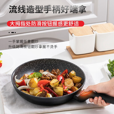 这款平底锅采用麦饭石不粘涂层设计,能有效预防油脂渗入,减少油烟方便清洁。配备的磁通复合锅底,可让受热更加迅速均匀。