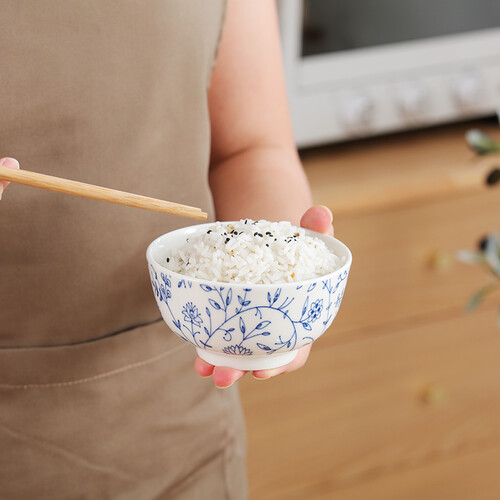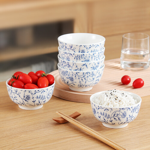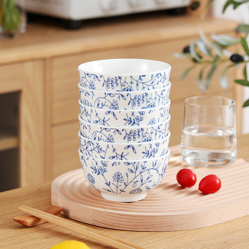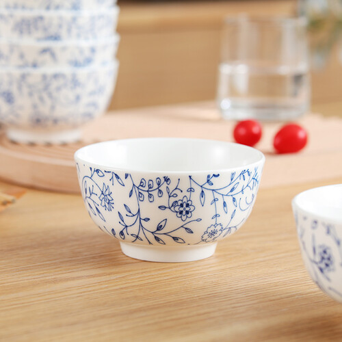 选取细腻瓷质经过高温烧制而成,釉面纯净光滑。采用了素雅花纹设计,使碗造型更加优美,而且久用不易褪色。