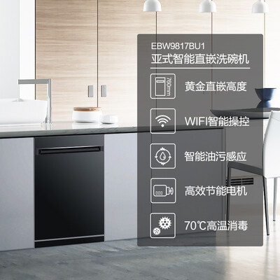 支持70度高温消毒,除菌率高达99.9%,有效杀菌洁净餐具,支持WiFi智控洗涤程序,更好掌握洗涤时间。