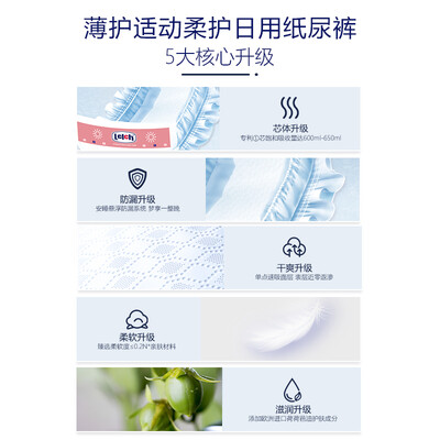 面层加入单点速吸科技网孔设计,可加快尿液下渗,减少尿液回渗刺激肌肤。经过严苛检测,品质好,穿戴更放心。