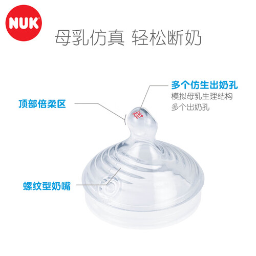 这款NUK自然母感超宽口径奶瓶的特殊之处就在于奶嘴,它有特别的倍柔区设计,如母乳般贴合宝宝上颚,帮助宝宝口腔健康发育。