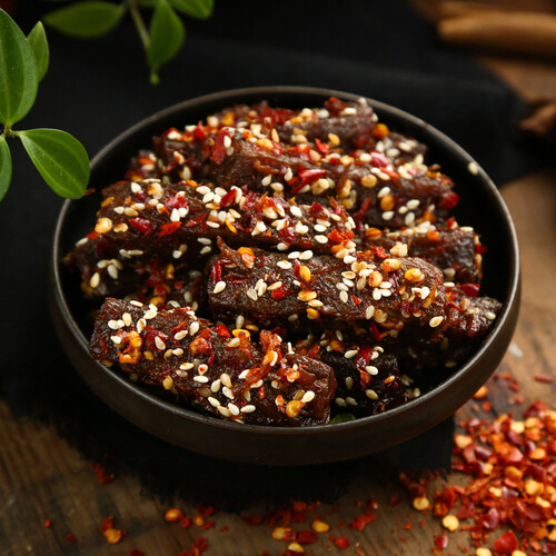 风干牛肉融合了川辣的滋味,入口麻辣鲜香富有嚼劲,可以让你体验到麻与辣的牛肉鲜香,并充分满足你的味蕾。