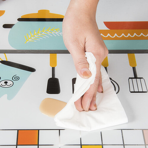 此款厨房贴纸黏贴起来十分轻松方便,而且防油防污,轻便防水,即使上面有了水和油渍也可以轻松擦拭洁净,经久耐用。