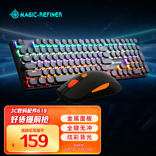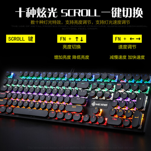 该产品采用炫彩背光灯效的设计,给您舒适的视觉享受,同时它采用磨砂肤质的鼠标设计,有效防止鼠标打滑。