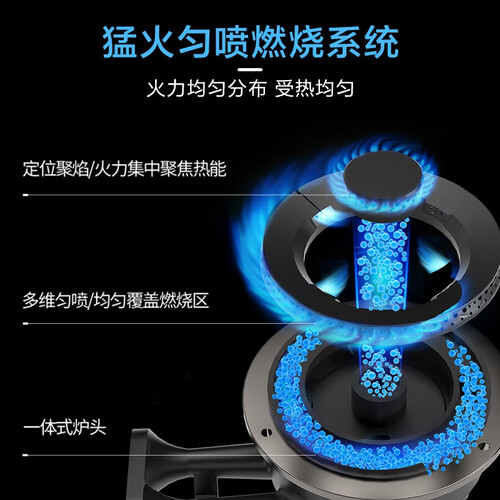 支持多挡火力调节的燃气灶,能够灵活应对不同的烹饪需求;一体式秘压结构的炉头,实现均匀供气,燃烧更稳定。