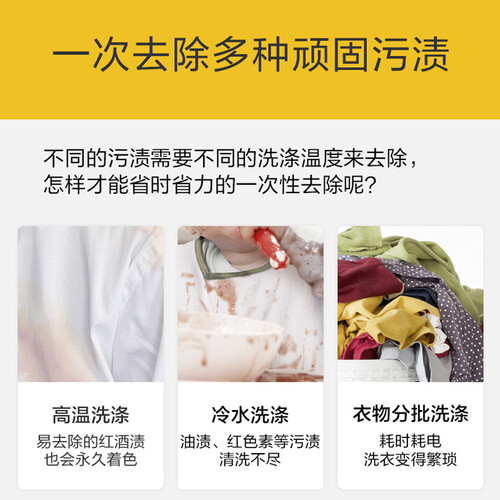 拥有玩渍净科技,可一次性去除25种常见的生活污渍,避免污渍着色,让衣物洁净如新。两种烘干模式,满足你的干衣需求,衣干即停更护衣。