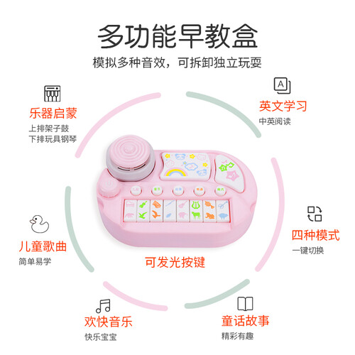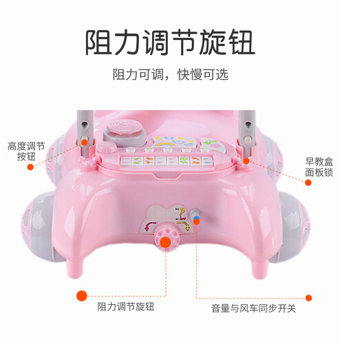 这是一款多功能的手推学步车,搭载了安全环保的材质,配有早教音乐播放器和早教故事等多种功能为一体,让宝宝体验不一样的早教。