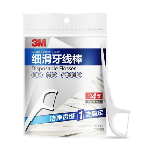 选用聚乙烯材料,韧性强,更不易起毛和断裂;更细的线材选择,可快速深入牙间死角,给口腔带来彻底的洁净呵护。