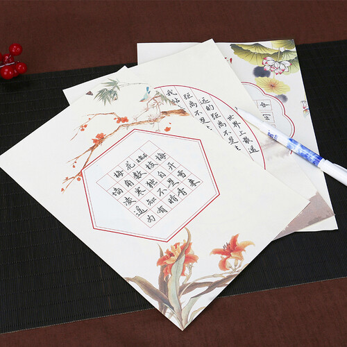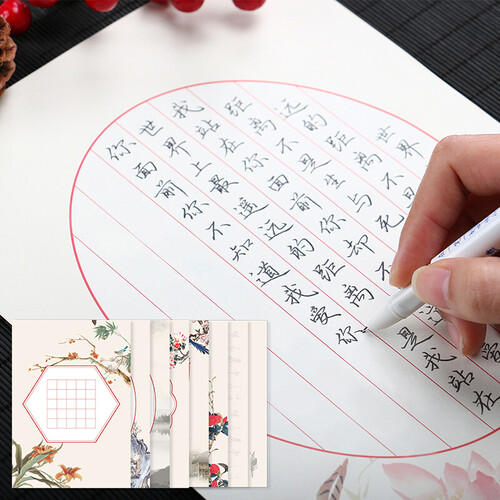 这是一款古香韵味钢笔练字帖,包含8个款式,精美花鸟图案,令人爱不释手。100g米黄道林纸,书写顺畅,预防近视。