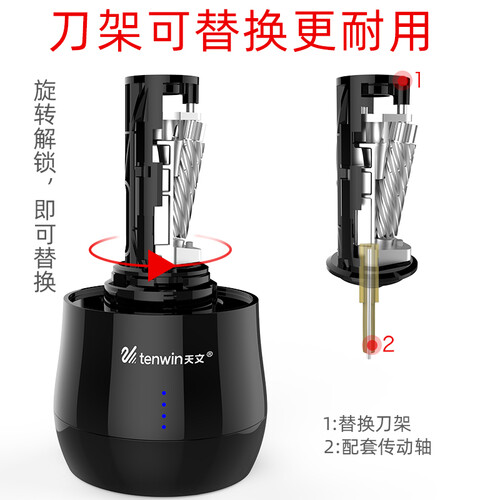 配置性能强劲2000mAh锂电池,支持边充电边削笔,自带大容量废屑槽,安心削笔不散落。温控保护,减缓机器性能老化。