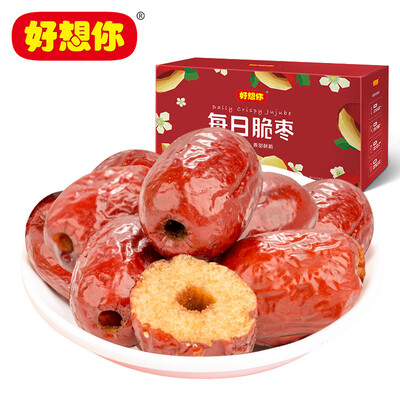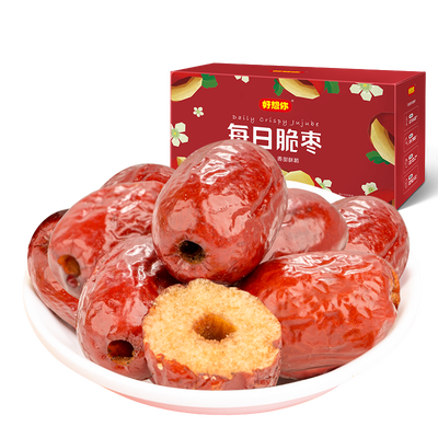 这款脆枣精心挑选均匀饱满的果实,多重清洗后干净卫生,呈现自然的枣红色泽,香甜爽脆,喀嘣喀嘣嚼不停。