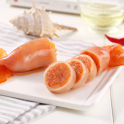 带籽的饱满鱿鱼仔,来自深海的有嚼劲鱿鱼,一口一个更满足。通过蒸煮调味,不仅达到健康目的,还让丰富口味深入肉纤维。