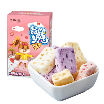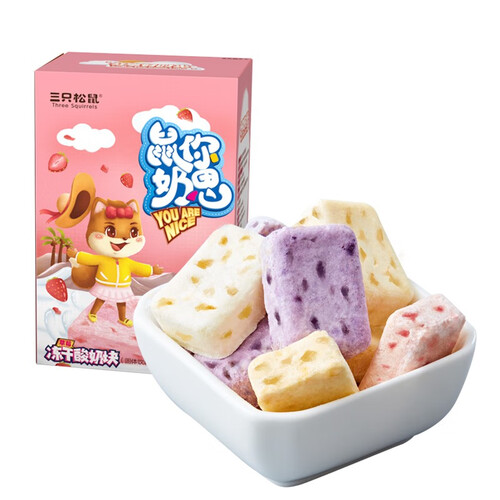 酸奶与真实水果结合而成,通过冻干的工艺,极大程度上保留了两者之前的味道,吃上一口,真是绵软可口。