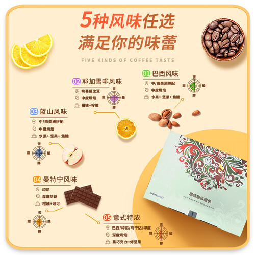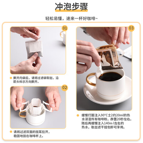 采用挂耳式包装,随时随地都能冲泡饮用,格外便利省心。喝起来味道香醇,丝滑咖啡在嘴中四溢,让嘴里都是香气。