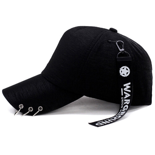 内置夹层定型的帽檐,侧边做金属圆环装饰,与富有设计感的字母条相呼应,刚柔并济尽显不羁范儿。棉质面料,吸湿性好。