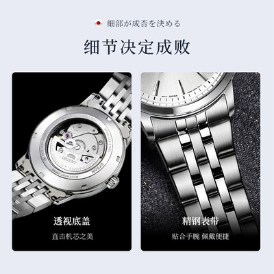 东方双狮机械表,有着时尚大气的镂空外观。人工合成镜面更加耐磨。100米深度防水,洗澡淋浴都不需要摘下手表更方便。
