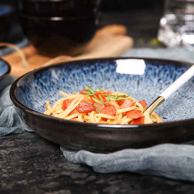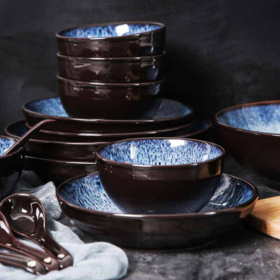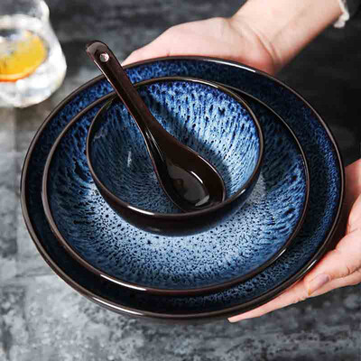 光滑的蓝色釉面,结合内敛简约的黑色配色,令餐具拥有更高的颜值,摆盘好看又美观,享受不一样的用餐体验。