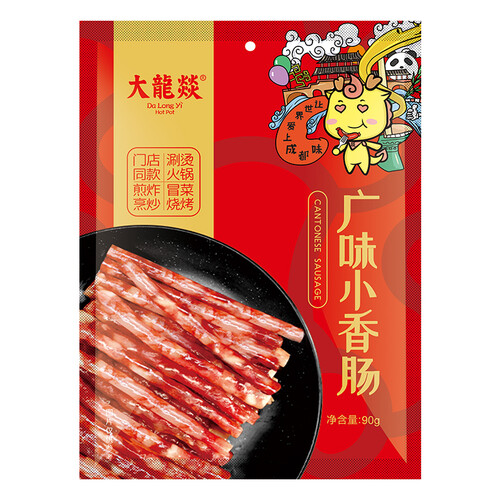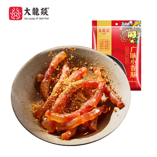 大龙燚火锅店在售同款小香肠,选用肥瘦均匀的优质猪肉经广式工艺制作,肉质鲜香弹嫩,丰腴味美,是煮制火锅的好搭档。