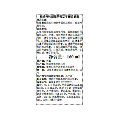 精选新鲜绿茶生榨提取美肤绿茶水,氨基酸含量丰富,帮助调节肌肤的水油平衡,质地轻薄触感柔滑,养出健康柔润水光肌。