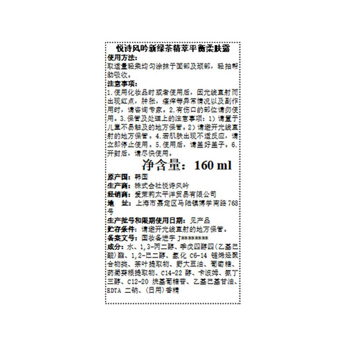 悦诗风吟 绿茶精萃平衡乳液