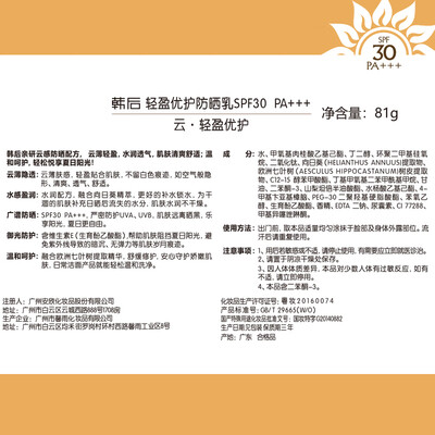 韩后 轻盈优护防晒霜