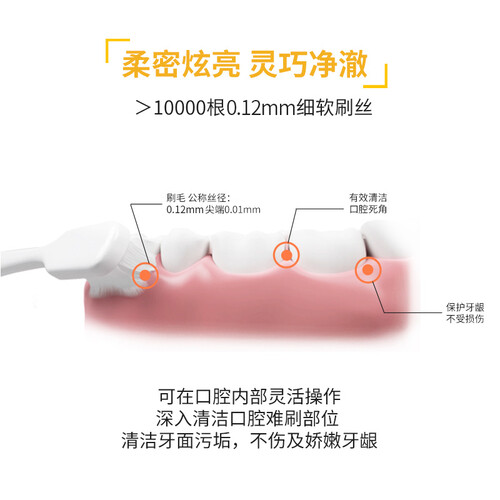 超密植毛分布,呵护牙龈敏感人群,享受无刺激的刷牙体验。选用纯粹植毛工艺,无添加胶水成分,放心使用不伤害口腔。
